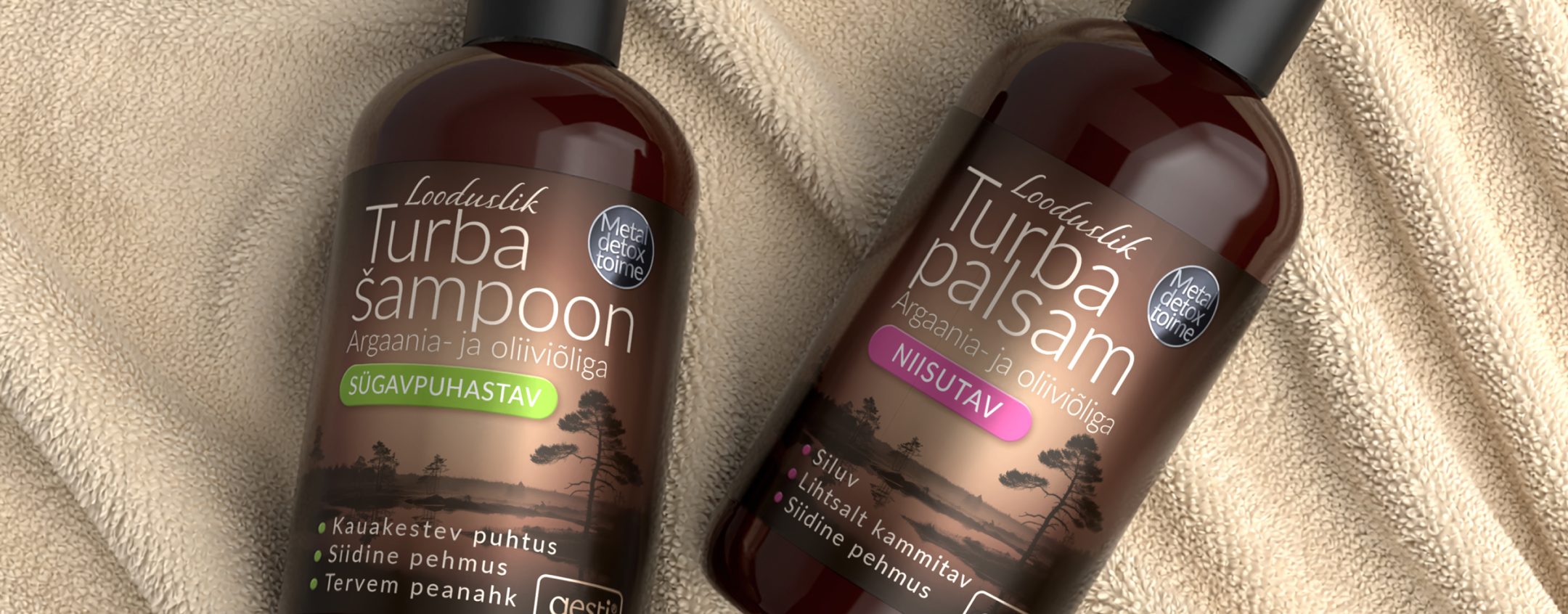 Olles lugenud turba kasulikkusest juustele, jõudsin guugeldades looduskosmeetikatootja Aestini, kes kasutab oma toodetes puhast Eesti turvast. Nende tootevalikuga tutvudes sattusin vaimustusse kõikidest toodetest, aga sain endale lubada paari-kolme toodet ning minu esimeseks valikuks olid turbašampoon argaaniaõliga, niisutav turbapalsam oliiviõliga ja dušikreem.