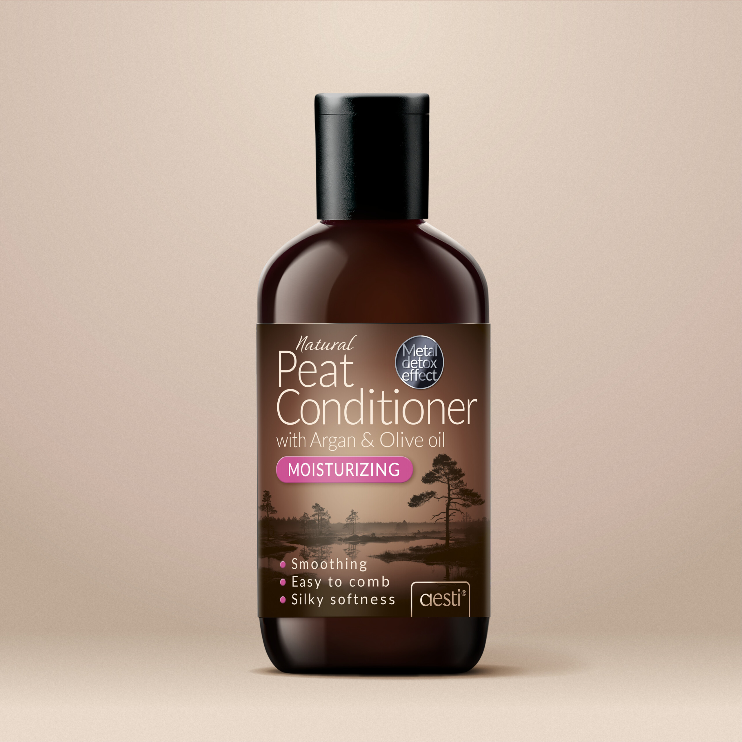 Aesti Moisturizing Peat Conditioner combines the deep-cleansing and nourishing power of Nordic peat with the rich care of argan and olive oils. Mineral-rich peat restores hair vitality and supports a healthy scalp, helping maintain natural balance while reducing dryness and frizz.